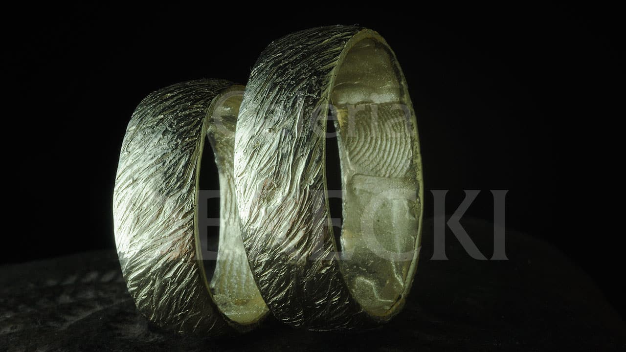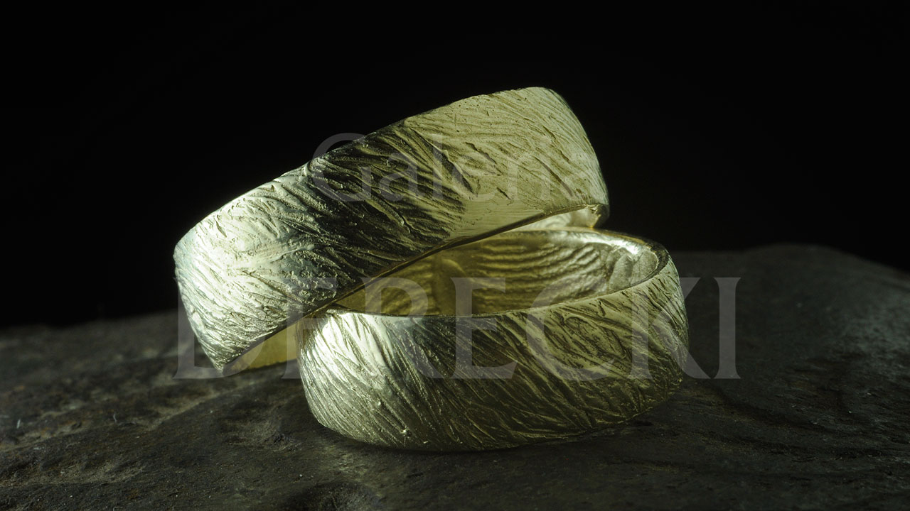 Oryginalna, wyjątkowa, biżuteria z wrocławskiej galerii, inspirowana kulturą i historią europejską, z odciskami linii papilarnych nowożeńcówCeltycki Złoty Warkocz- obrączki wykonywane ze złota lub złota połączonego z meteorytem