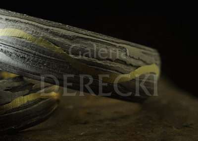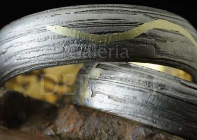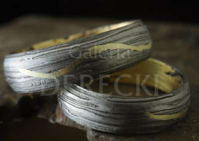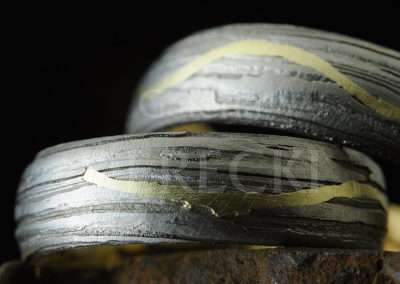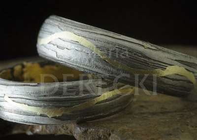 Damasceńskie obrączki meteorytowe z meandrującą złotą linią wykonane w naszej wrocławskiej Galerii DereckiObrączki Vistula łączą słynny meteoryt Morasko ( dzielnica Poznania) , złoto i żelazo dymarkowe (z okolic Calisii). Na powierzchni pierścieni, zmodyfikowaną metodą damaskinażu umieszczono migotliwą smugę wijącą się delikatnie niczym nurt Wisły. Falująca złota linia okala meteorytową biżuterię. Nazwa obrączki to łacińskie określenie naszej największej rzeki Wisły stanowiącej od zarania dziejów żywe serce kraju nierozerwalnie związane z Krakowem- stolicą Małopolski oraz Warszawą i Gdańskiem. Drugie znaczenie to określenie Marsjańskiej doliny „Vistula Valles” podkreślające gwiezdną materię pierścienia.